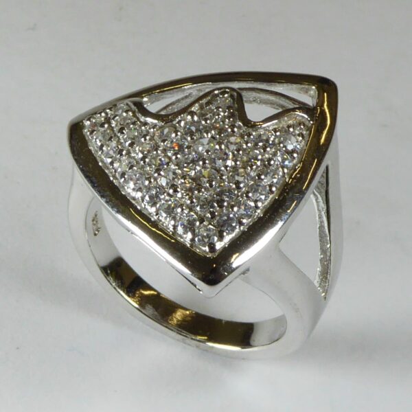 Anillo con forma triangulo y circonitas blancas de 2 mm.