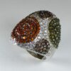 Anillo rodiado con circonitas en diferentes colores. Blanco , marrón, verde. oliva y naranja.