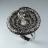 UncategorizedAnillo rodiado con forma circular de 29.20 mm. Con circonitas rosas y blancas.