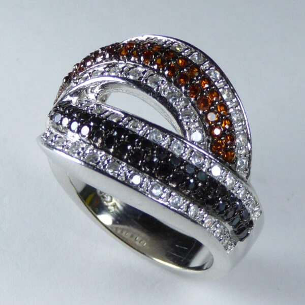 UncategorizedAnillo rodiado con circonitas blancas, negras, rubí y un hueco en el centro de 2.40 mm.