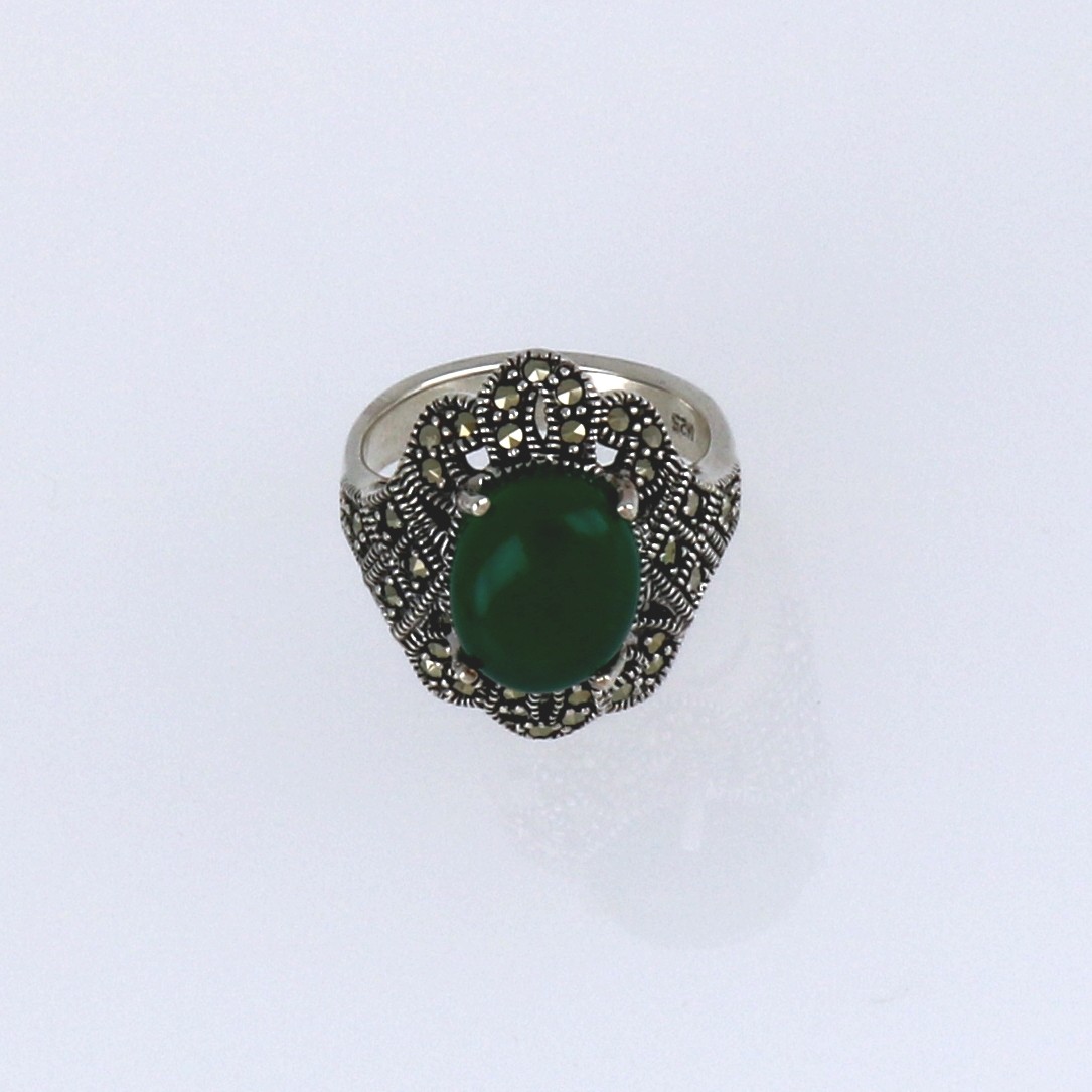 Anillo de Plata rodiada con piedra verde