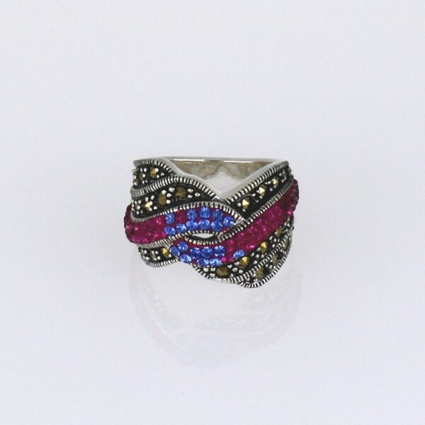 Anillo de Plata rodiada con piedras de colores