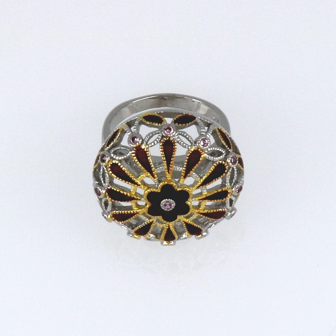 Anillo de Plata rodiada con piedras y esmalte