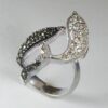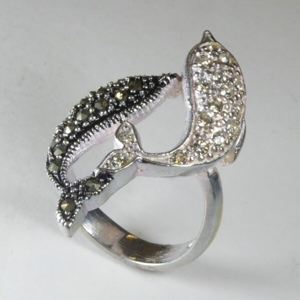 Anillo rodiado con dos delfines. Uno con circonitas blancas y otro de marquesita.