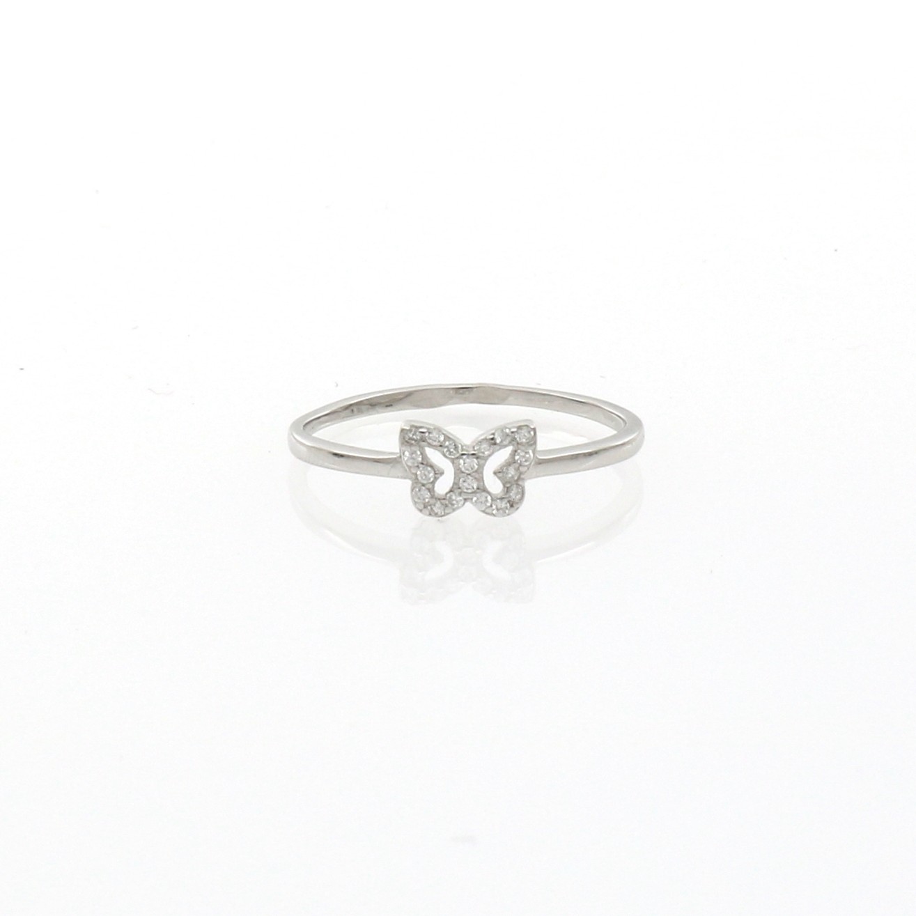 Anillo rodiado Con una mariposa en el centro de circonitas de 1 mm y 5.70 mm de ancho.