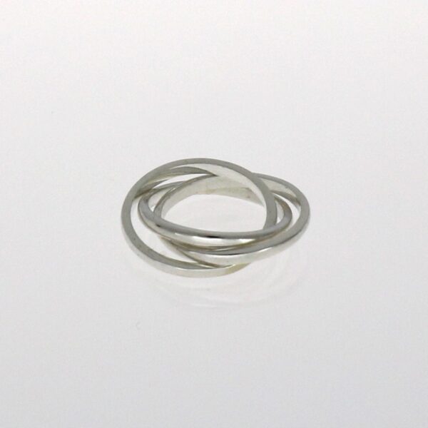 Anillo compuesto por tres alianzas lisas entrelazadas de 2.10 mm cada una.
