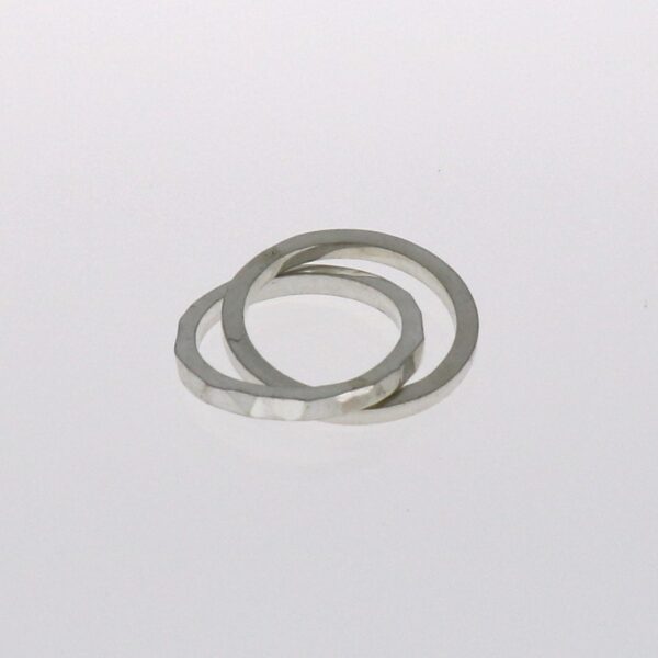 Anillo doble y entrelazado. Uno liso y el segundo martilleado. De hilo cuadrado de 2.15 mm.