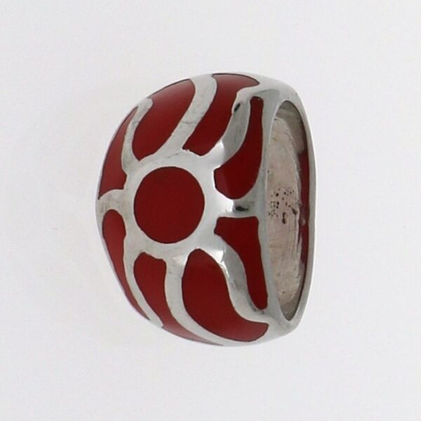 Anillo rodiado esmaltado en burdeos. 4.50 mm de alto, 15.15 mm de ancho disminuyendo a 5 mm.