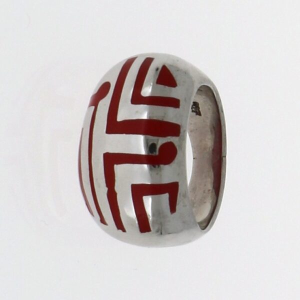 UncategorizedAnillo liso con de coración en burdeos. 14.90 mm de ancho, disminuyendo a 5.30 mm.