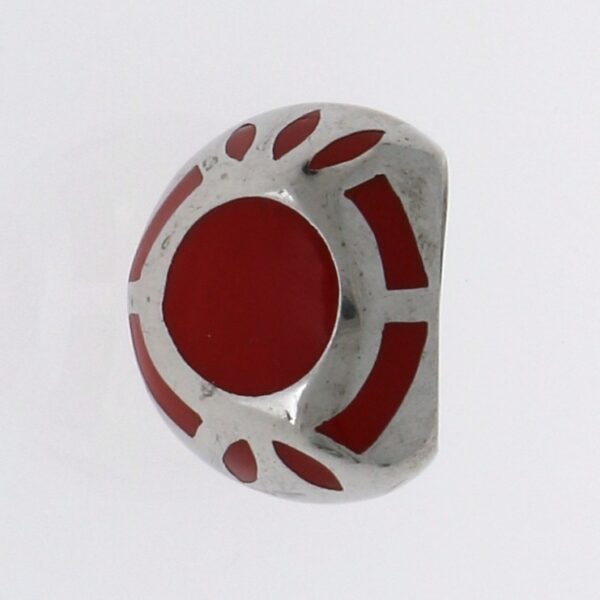 Anillo rodiado esmaltado en burdeos.6.15 mm de alto, 20 mm de ancho disminuyendo a 5 mm.