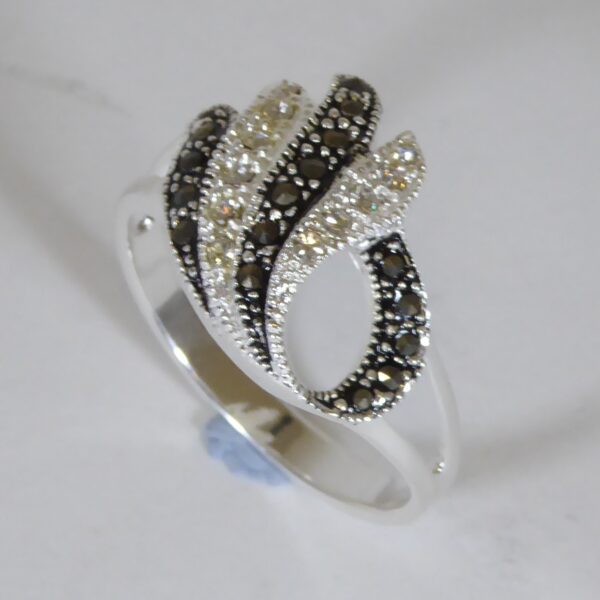 Anillo rodiado, que combina las marquesitas con circonitas blancas.