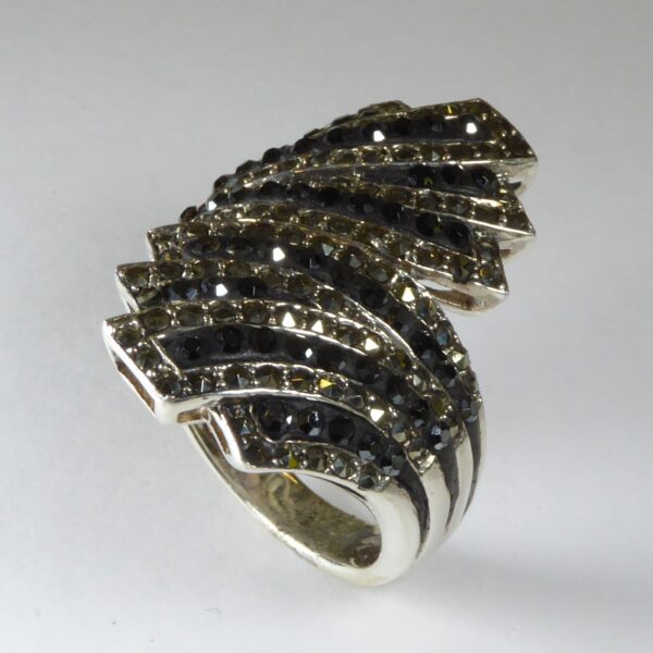 Anillo rodiado de marquesitas con circonitas negro. 30 mm de ancho.