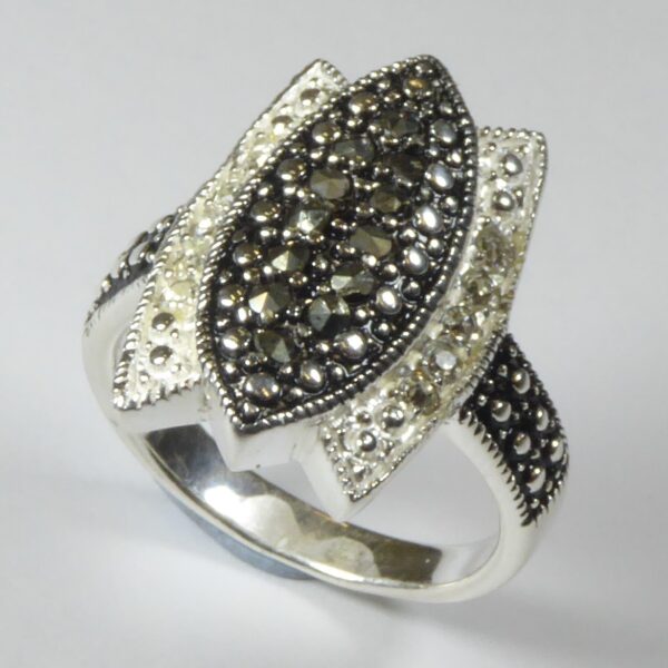 Anillo de marquesitas, combinado con circonitas blancas de 2 mm. Con 14 mm de ancho y 21 mm de largo