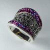 UncategorizedAnillo rodiado de marquesitas. Con dos filas de circonitas en cada lateral en color fucsia y azul.