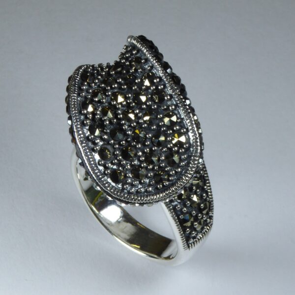 UncategorizedAnillo rodiado de marquesita con circonitas en color negro, gris y blanco en los cantos.