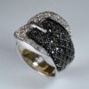 Anillo rodiado con forma de hebilla, de marquesitas y circonitas blancas de 2 mm.