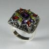 UncategorizedAnillo de marquesitas cuadrado. Decorado con circonitas de colores rubí, amatista, citrino y oliva.