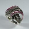 UncategorizedAnillo rodiado de marquesitas, decorado con dos filas de circonitas en rosa y blanco.