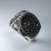 Anillo rodiado de marquesitas. Con circonitas en tono difuminado negro, gris y blanco.