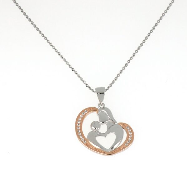 Cadena y colgante de Plata con piedras motivo de la madre bicolor