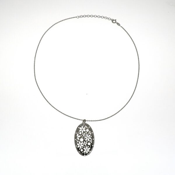 Cadena y Colgante de Plata ovalado calado
