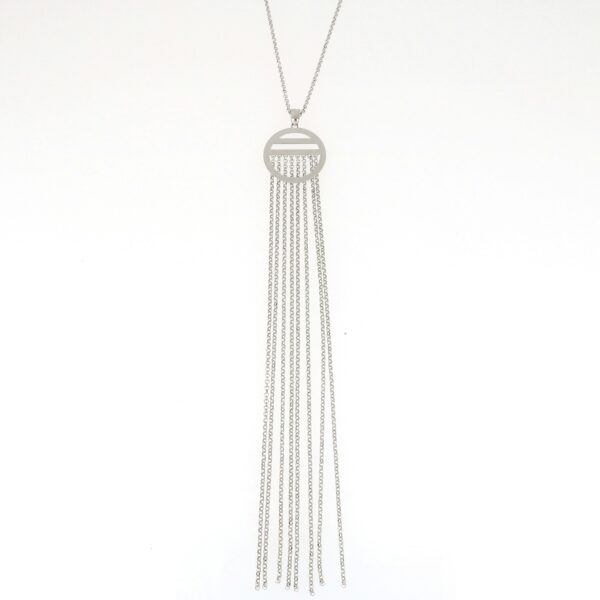 Cadena y colgante de Plata rodiada disco calado con flecos