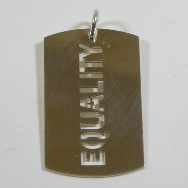 UncategorizedChapa rectangular. Con la palabra EQUALITY calada en su interior. 40 mm de largo y 22 mm de ancho.