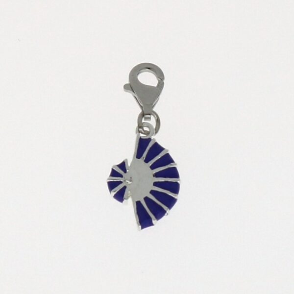 Colgante charm de un abanico esmaltado en morado. 16.20 mm de largo y 10.55 mm de ancho.