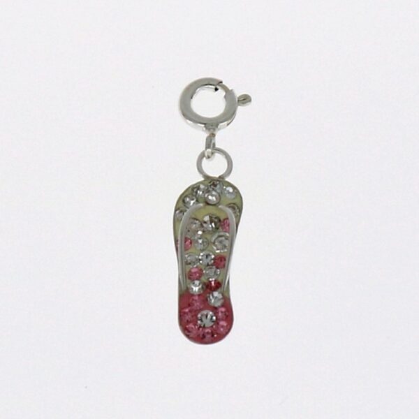 Colgante charm, de una chancla con circonitas rosas y blancas. 21.30 mm de largo y 6.90 de ancho.