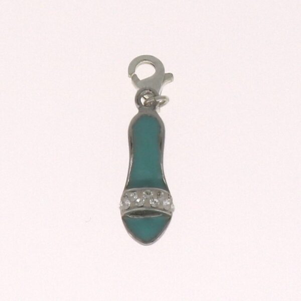 Colgante charm de un zapato esmaltado en verde y circonitas. 21.65 mm de largo y 7.35 mm de ancho.