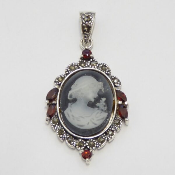 Colgante de Plata Camafeo con Piedras Color Blanco y Negro