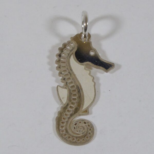 Colgante de caballito de mar con calados y satinados.30.60 mm de 14.20 mm de ancho.