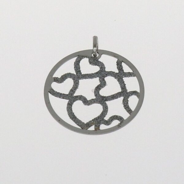 Colgante de corazones calados, con purpurina y rodeado de un circulo liso.