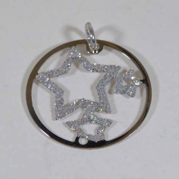 Colgante de estrellas. Con purpurina y rodeado de un circulo liso.