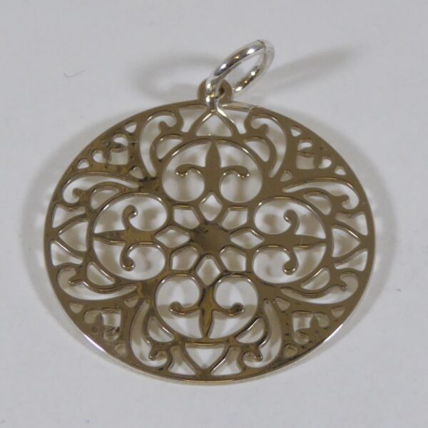 Colgante circular labrado,con la Flor de Lis. 26.70 mm de diámetro.