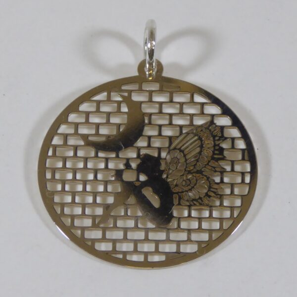 Colgante circular con 26.80 mm de diámetro. Calado en su interior con la silueta de un hada y la luna.