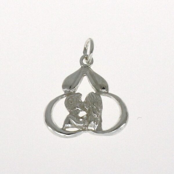 Colgante con forma triangular. Con un hombre y una mujer besándose en su interior.