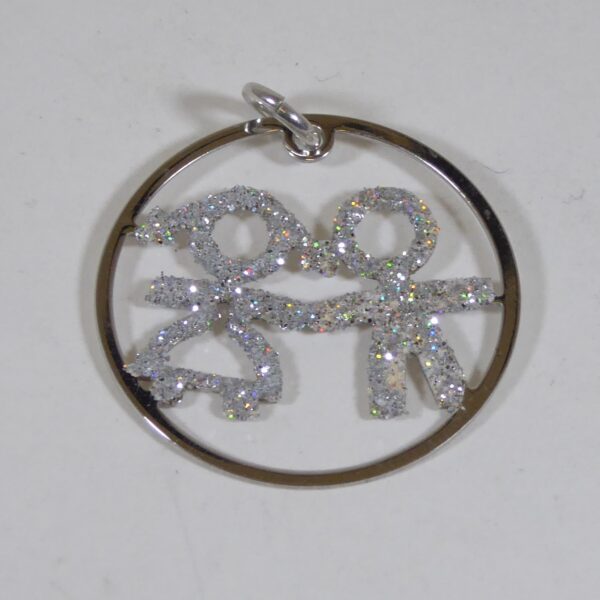 UncategorizedColgante niña-niño. Calado, con purpurina y en un circulo de 22.20 mm de diámetro.