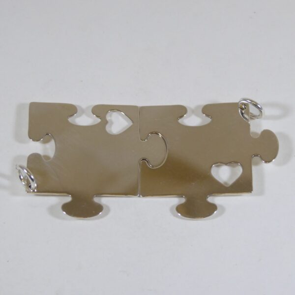 Colgante de una pieza de puzzle con un corazón calado.Encajando con otro igual para parejas. 31.20 mm de largo y 31.20 mm de ancho.