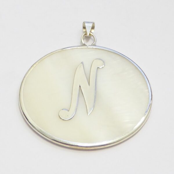 Colgante redondo de nacar con 40.85 mm de diametro y la inicial  N.