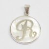 UncategorizedColgante redondo de nacar con 20.25 mm de diametro y la inicial R.