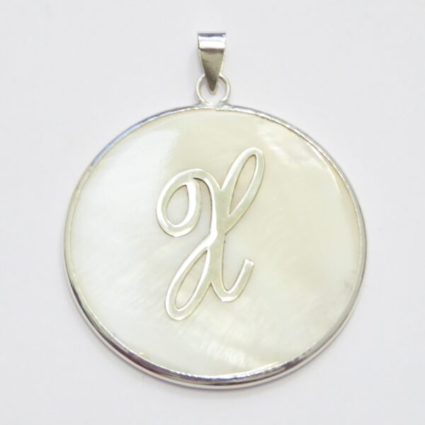 Colgante redondo de nacar con 40.85 mm de diametro y la inicial H Plata de ley de 925 milésimas