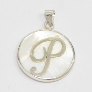 Colgante redondo de nacar con 20.25 mm de diametro y la inicial M
