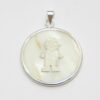 Colgante redondo de nacar con 30.90 mm de diametro con un niño en el centro.