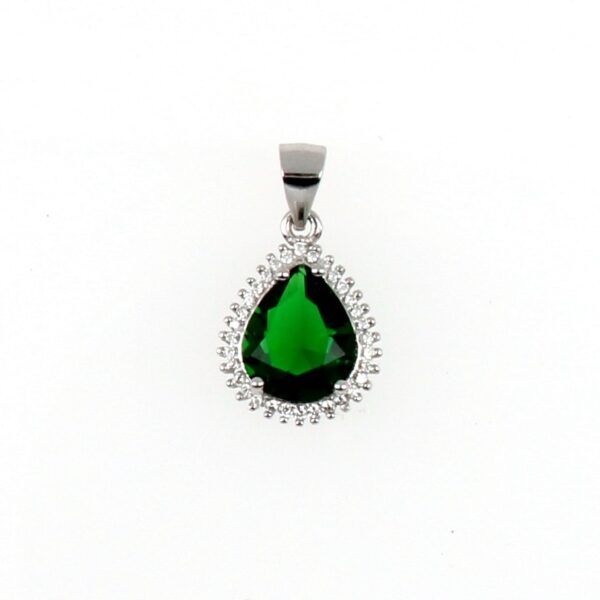 Colgante con circonita color esmeralda en forma de lágrima. 17.55 mm de largo y 13.15 mm de ancho.