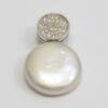 Colgante que combina, circulo con circonitas y piedra anacarada. 27.05 mm de largo y 16.60 mm de ancho.