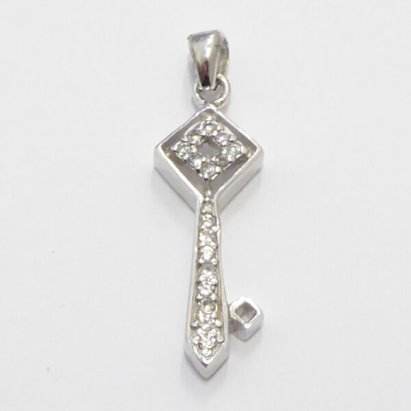 Colgante de una llave con circonitas. 27.80mm de largo y 9.25 mm de ancho.