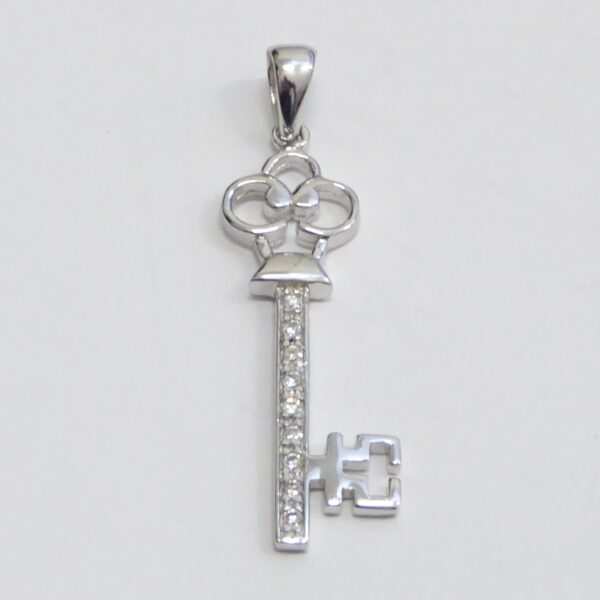 Colgante de una llave, que combina la parte lisa con circonitas .38.25 mm de largo y 10.85 de ancho.