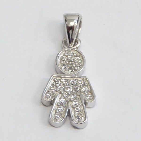Colgante de niño con circonitas. 18 mm de largo y 9.65 mm de ancho.