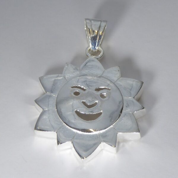 Colgante de un sol con la cara sonriente calada.